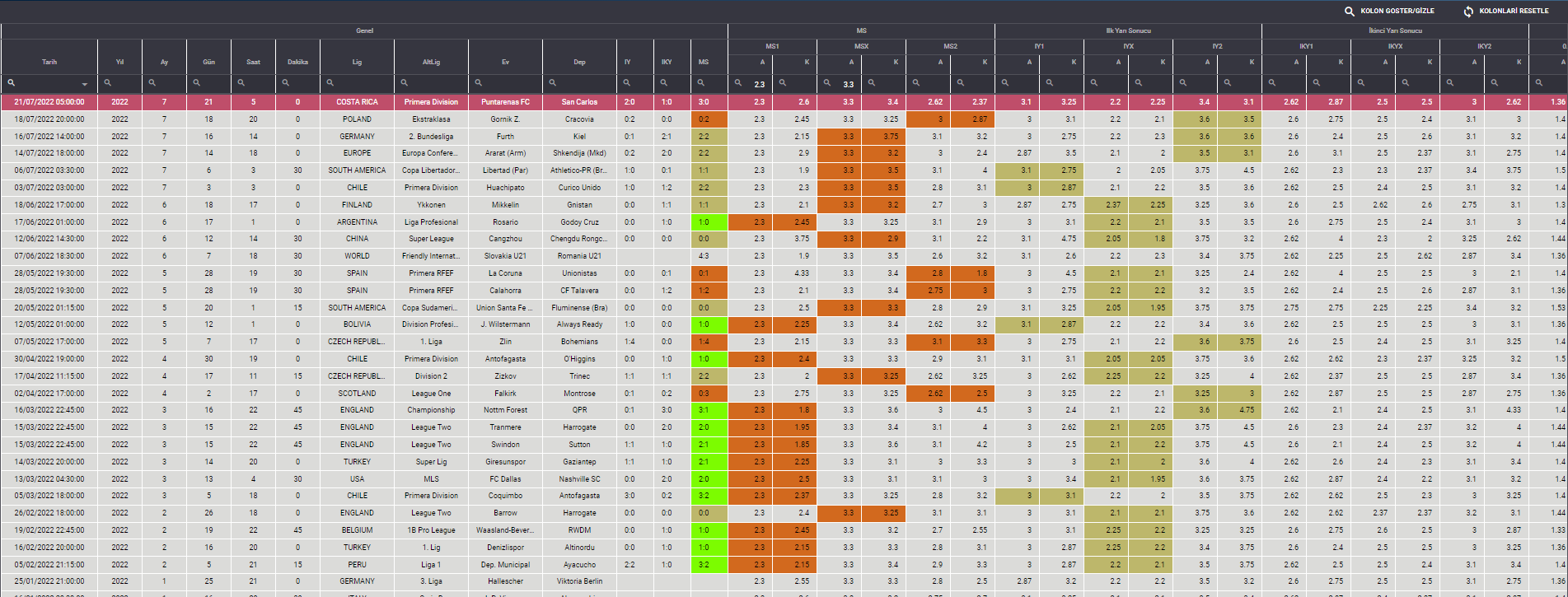 Diğer sitelerde bulunmayan bu filtreler sayesinde aralık dahi filtreleyebilirsiniz. Örneğin MS1 oranı için yalnızda 1.5 yerine 1.45 ila 1.55 arasını filtrele diyebilirsiniz. Bu da daha ince filtreler yapmanızı sağlayacaktır.
