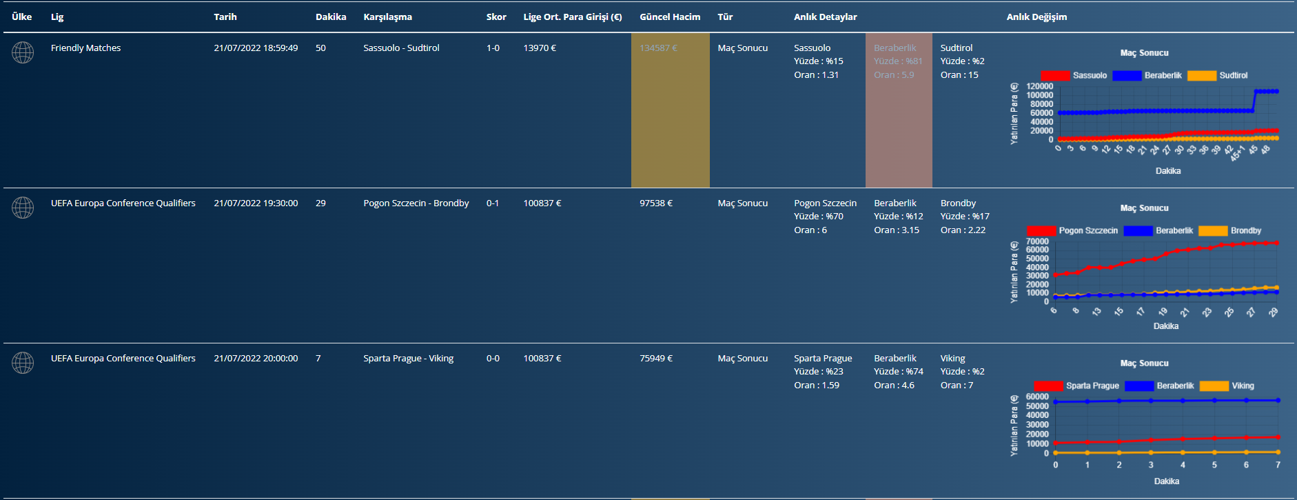 O maçları bahis tercihlerinizde kullanabilirsiniz. Kısacası hacmin yüksek ve hacmin tek şıkta toplanması bahis açısından o şıkkın değerli ve bahisçilerin o şıkka güvendiği anlamına gelir.